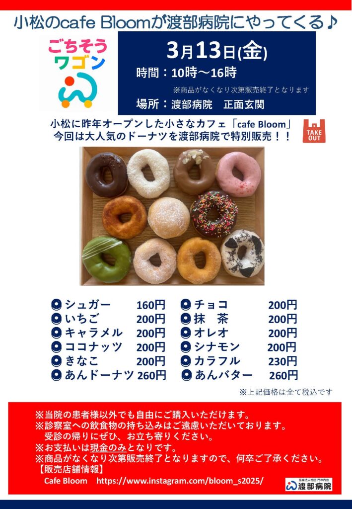 3月13日(金)の「ごちそうワゴン」のご案内です。