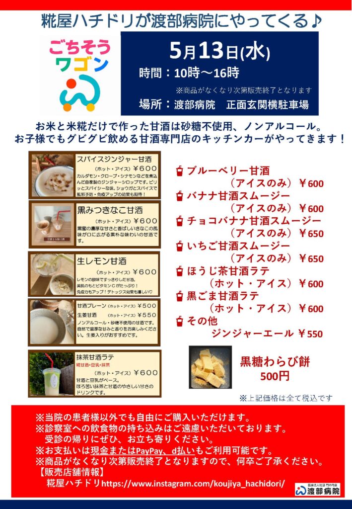 5月13日(水)開催「ごちそうワゴン」のご案内です。