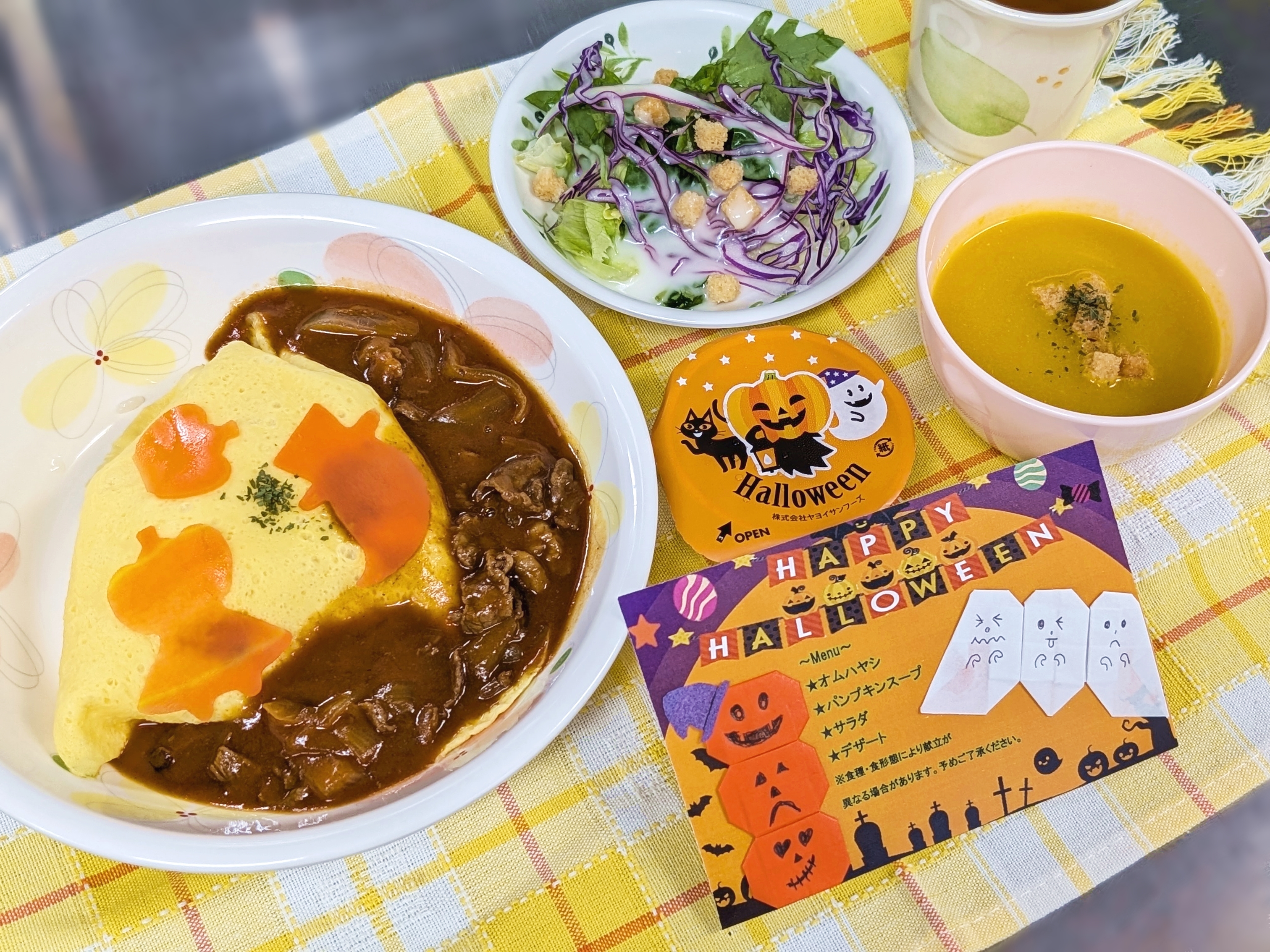 こんにちは!栄養科です🐱💕 朝晩の冷え込みが増し、ぐっと秋らしい季節になりました。 栄養科では、季節の行事を感じていただけるよう、10月31日にハ … Halloween👻🍭