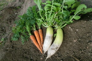 9月にはプランターを卒業し、当施設内にある畑で大根、ニンジン🥕を育てました。