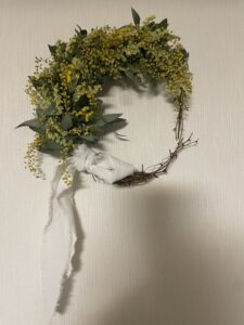 三日月形のミモザリース(1点物)をゲットしました🤩