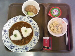 今年もクリスマスの雰囲気満載のお食事を調理員さんが作ってくれました😍
